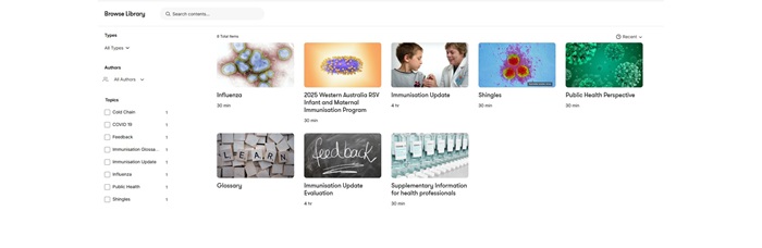 The online education modules have been developed by the Communicable Disease Control Directorate (CDCD), WA Department of Health. For WA Health immunisation providers working under the CEO of Health SASA, the modules are compulsory learning prior to administering.