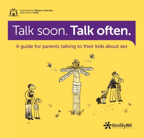 Following feedback that parents needed support in their role as the primary sex educators of their children, WA Health has developed Talk soon. Talk often: a guide for parents talking to their kids about sex. This free resource has been developed to help parents initiate regular and relaxed conversations with their children about relationships and sexuality education.